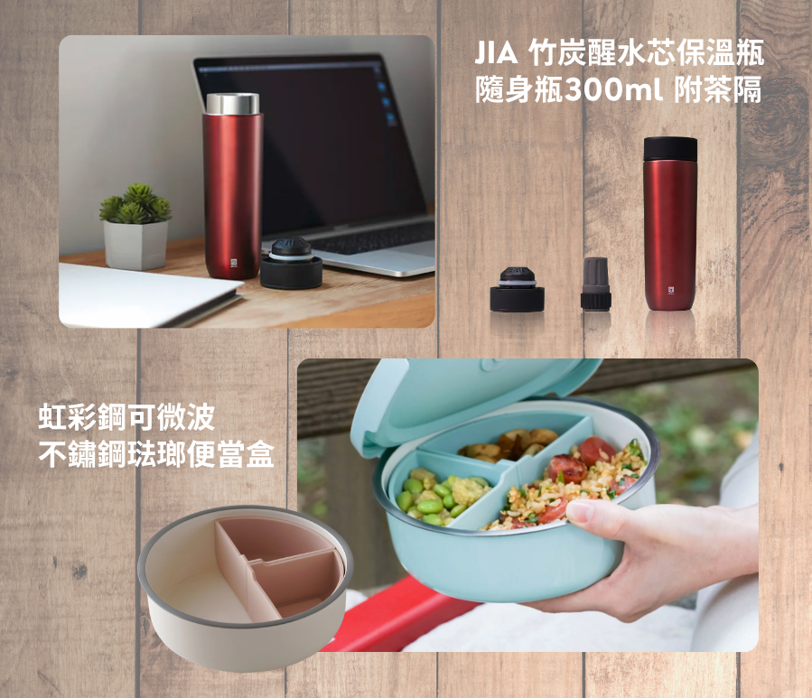 「JIA 竹炭醒水芯保溫瓶 隨身瓶300ml 附茶隔」一個